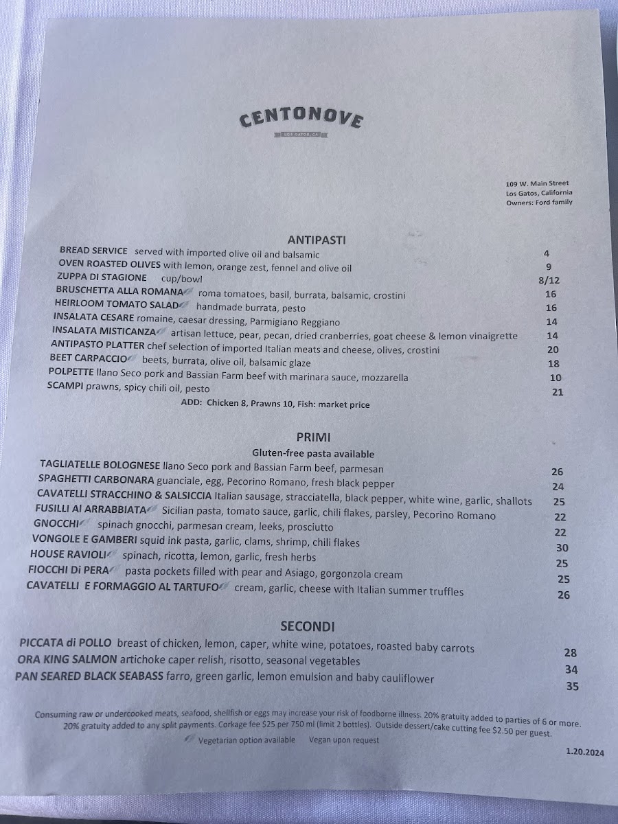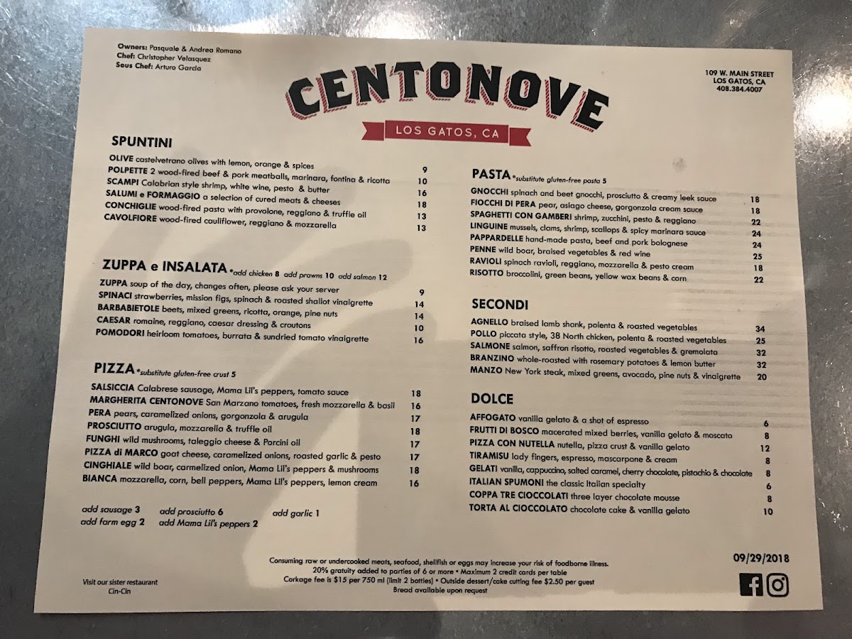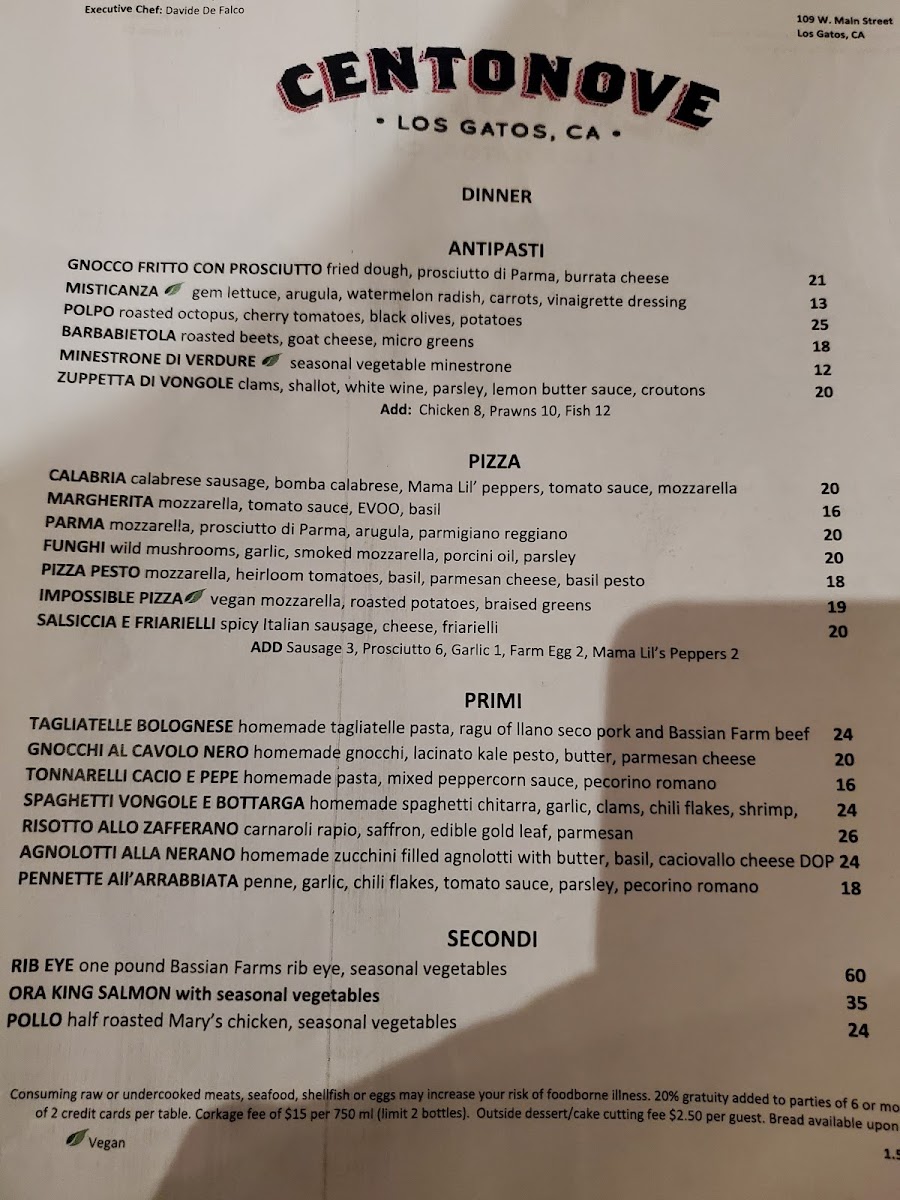 Welcome to Centonove, a vibrant Italian restaurant nestled in the heart of Los Gatos at 109 W Main St. This gem combines the warmth of traditional Italian hospitality with a modern twist on classic dishes, inviting patrons to indulge in an unforgettable dining experience.