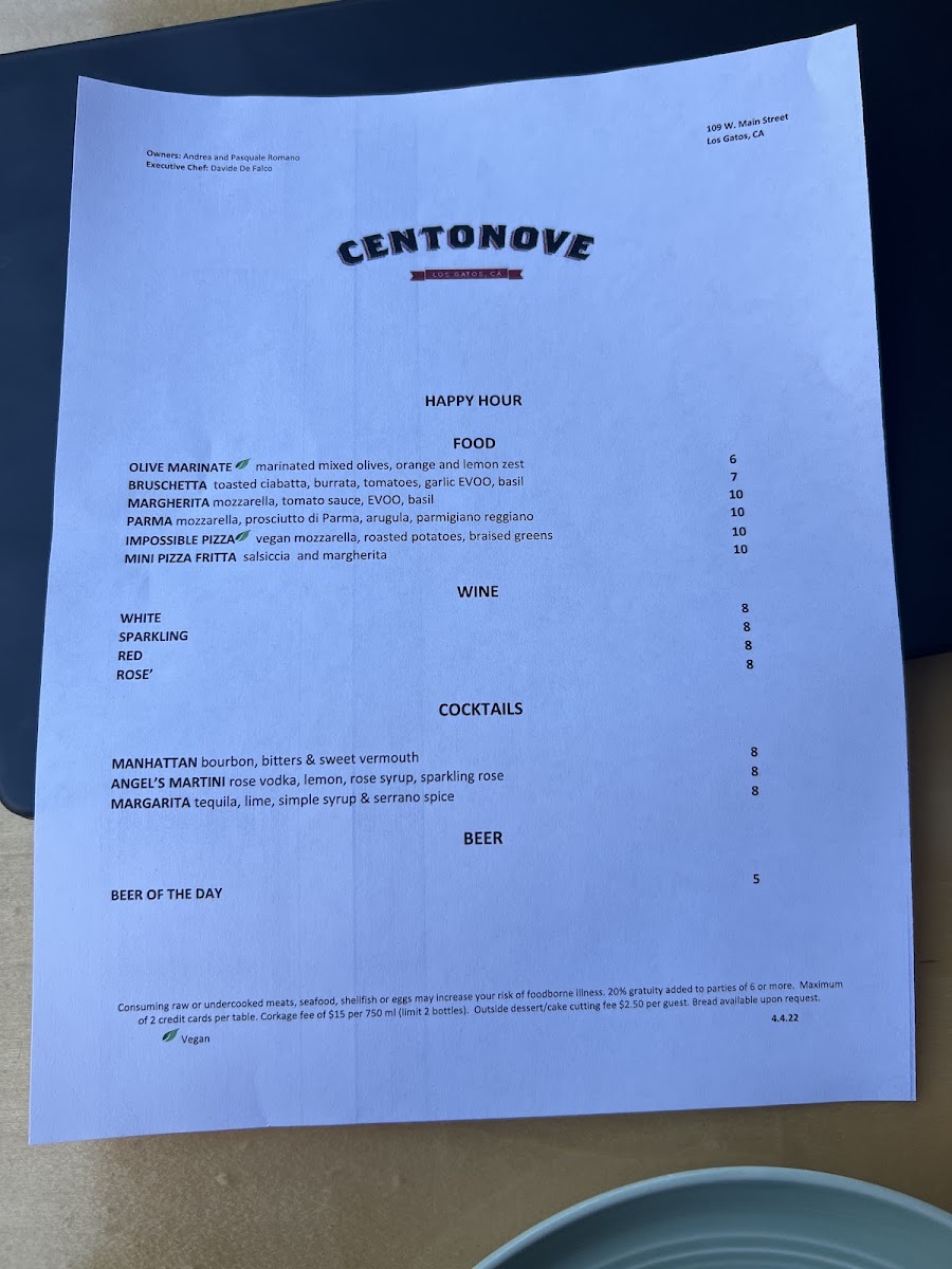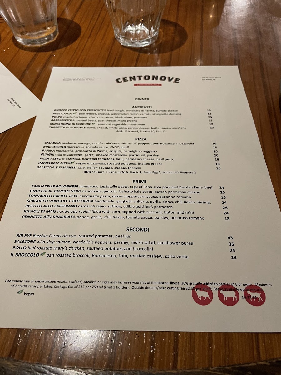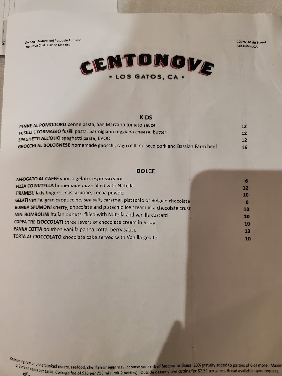 Welcome to Centonove, a vibrant Italian restaurant nestled in the heart of Los Gatos at 109 W Main St. This gem combines the warmth of traditional Italian hospitality with a modern twist on classic dishes, inviting patrons to indulge in an unforgettable dining experience.